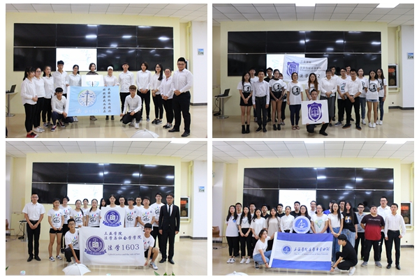比赛成绩公布,由高文老师、田希老师、蒋正喜老师、陈玉老师为他们颁奖。法学二班以85.75分取得一等奖,法学四班以84.88分取得二等奖,法学三班与法学一班分别以84.63和74.5分取得三等奖。