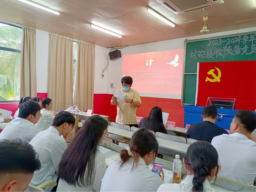 会议开始,全体起立奏《国际歌》。由曹添书记介绍出席老师和支部审查情况。曹添书记表示,经过对黄稚淇等16名同志学业水平审查,全院范围内公示征求党内外员工意见,审阅这些同志的个人档案,函调亲属相关政治情况,16名同志政审均审核通过。