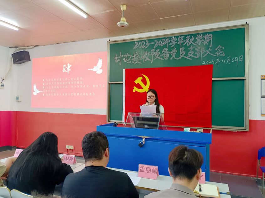 根据党员发展工作要求,为进一步壮大党员队伍,不断增强党组织的凝聚力、战斗力和创造力,2023年11月29日下午3点,ylzzcom永利总站线路检测召开了2023—2024年秋季学期接受预备党员支部大会,讨论关于16位入党发展对象转为预备党员的事宜。会议由团委副书记曹添主持,党总支部副书记孟丽娟,21级思想导师马世龙,22级思想导师刘梦寒,23级思想导师陈韬宇出席,全体正式党员和预备党员参加会议。