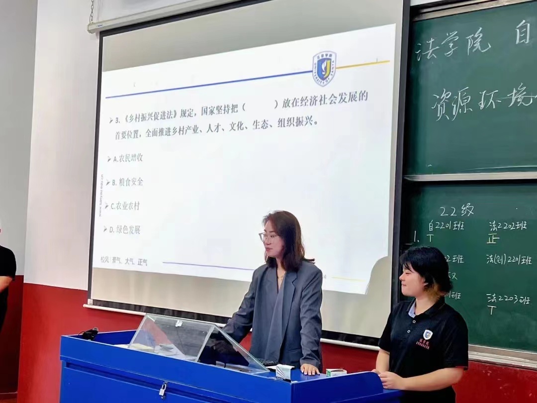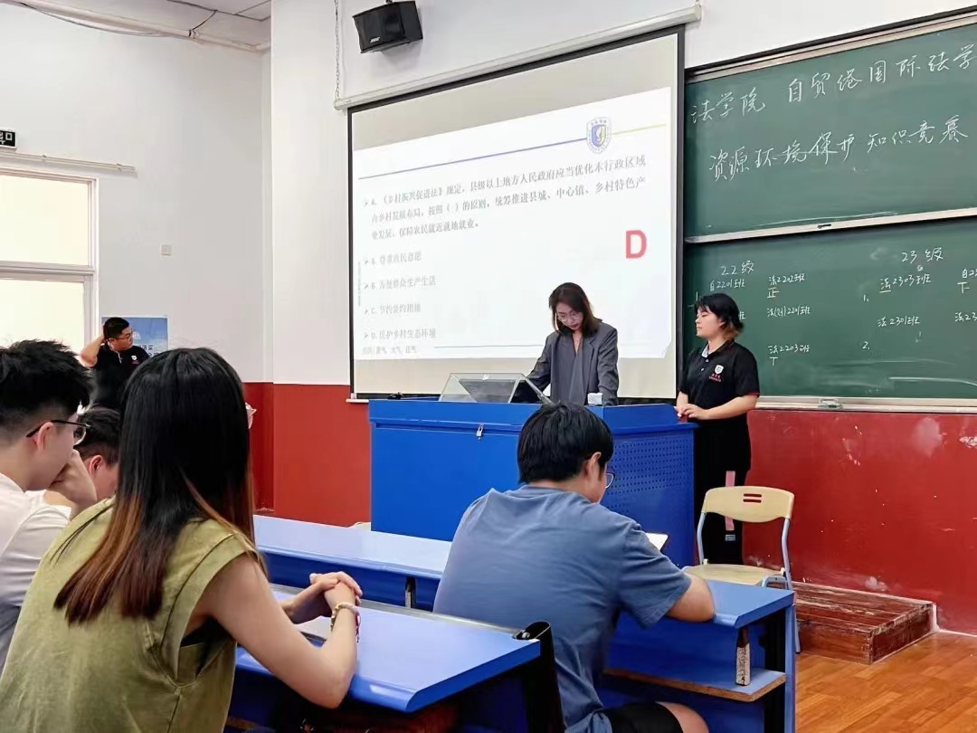 此次竞赛分别由22级、23级法学专业、法学(自贸港法律)专业各班派出5名同学进行作答。初赛、晋级赛以及决赛分别都由两个班级进行对决。竞赛题目设计贴近实际,既有理论知识的考查,也有实践操作的挑战,如分析某一环境事件的法律适用、设计环保法律宣传方案等,都充分考验了同学们的专业素养与综合能力。