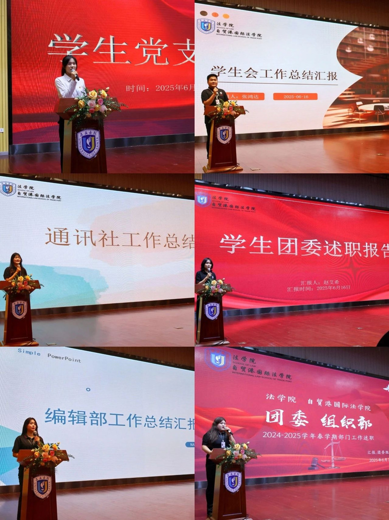 大会第三、第四项,团学组织主席团述职汇报与团学组织部门抽选述职。他们从工作总结、成果展示、未来计划与展望等方面进行全面回顾,深入分析工作中的成功经验和不足之处,结合组织的发展目标、当前的实际情况以及对未来趋势的判断,制定出更加科学合理的发展规划,以便在未来的工作中加以发扬或改进。