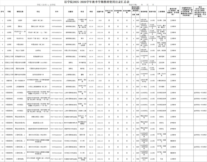 25级:2025-2026学年秋季学期公司教材使用目录汇总表(2).xls