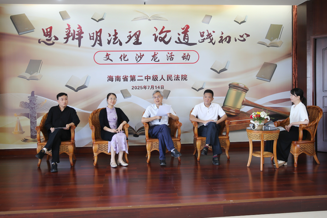 2025年7月14日上午10时,海南省第二中级人民法院在本院十楼举办“思辨明法理 论道践初心”文化沙龙活动,ylzzcom永利总站线路检测胡宏雁副教授、吕运乾老师作为点评专家受邀参加本次活动。