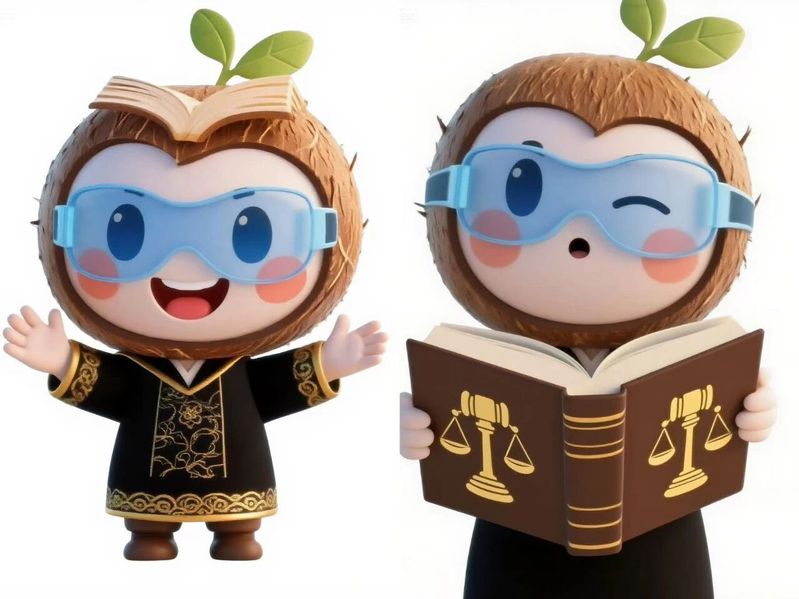 这是一位传承公司精神的智慧守护者,“法小椰”以拟人化的椰子为基础造型,巧妙融合法律符号与海南风情,传递出“生于海南,链通世界”的国际化理念。