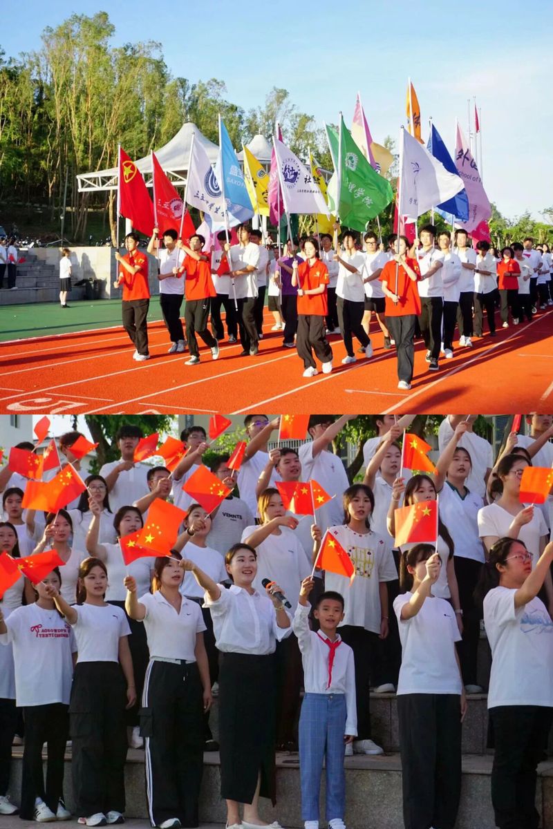 最后的环节为师生合影仪式。在工作人员的引导下,大家移步前台,各学院举起院旗,同学们有序聚拢、排成队列,挥舞着手中国旗,镜头定格下师生与祖国同频共振的瞬间。在全校师生合影留念后,公司师生留下来拍独属公司的照片,定格美好瞬间。
